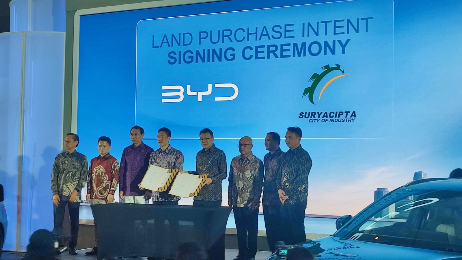 “Setelah lewat banyak penilaian, kami memutuskan Kawasan Industri Subang Smartpolitan jadi lokasi yang pas untuk pengembangan industri EV BYD di Indonesia,”