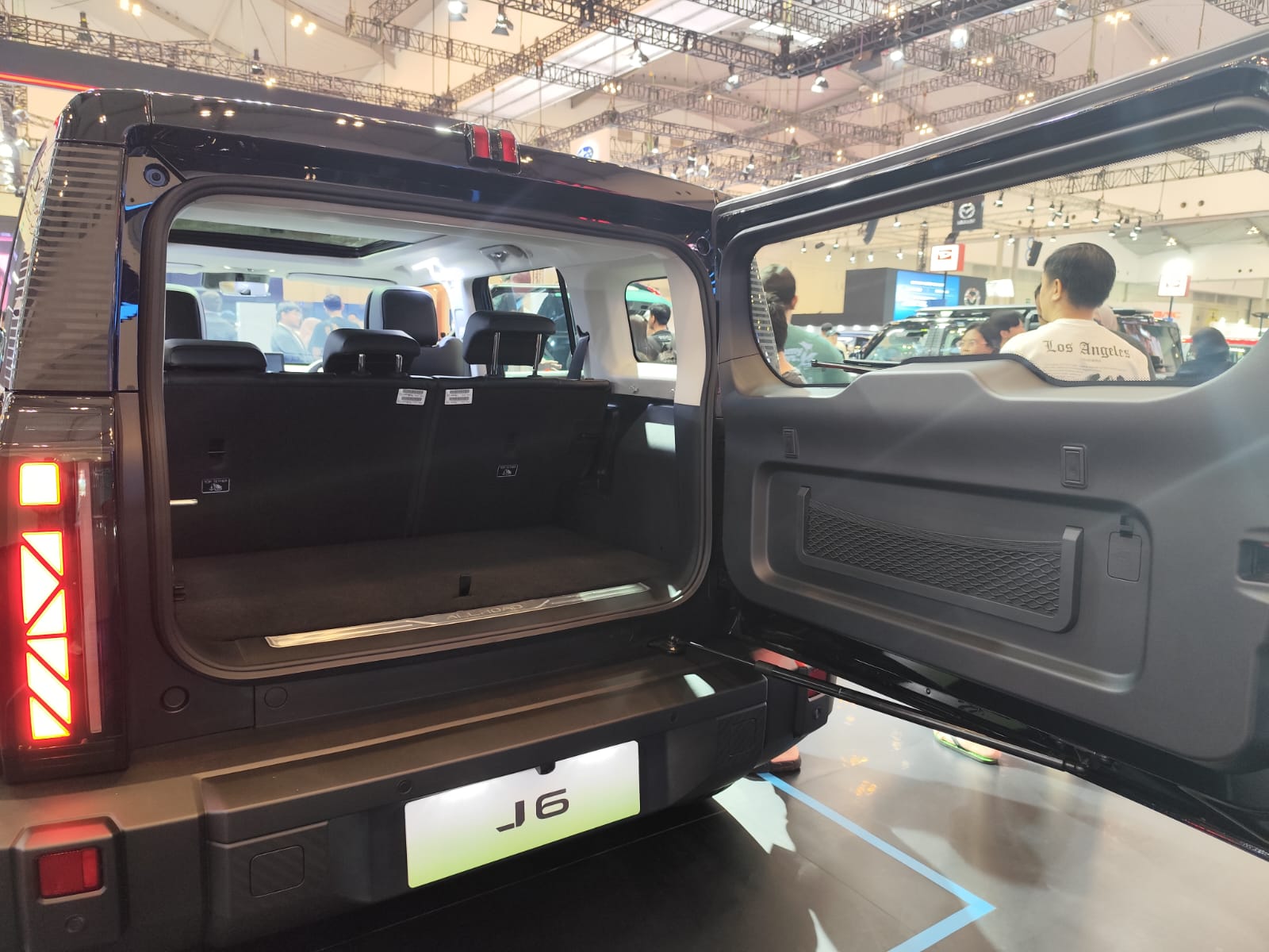 Di Chery J6 EV ini juga, pintu bagasi bisa terbuka 90%. Sehingga memudahkan untuk akses masuk keluar barang. Di doortrim-nya juga ada hook yang bisa dipakai mengaitkan atau mengikat barang.