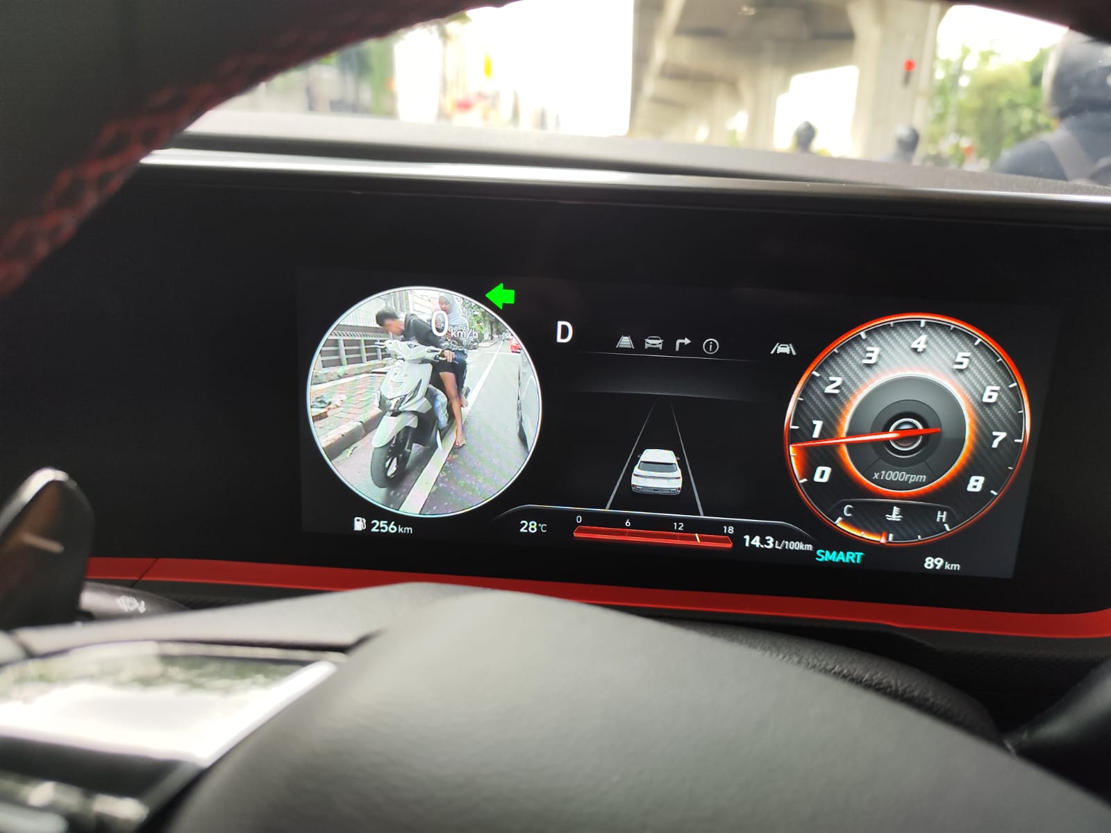 Berada di jalan seputar Kelapa Gading, cukul bisa merasakan 3 driving mode yang ada. ECO, NORMAL dan SPORT. Kalau pilih ECO sudah pasti akselerasi terasa lama. Saat pilih SPORT, akselerasi dari mesin Smartstream 1.5L terasa menghentak.