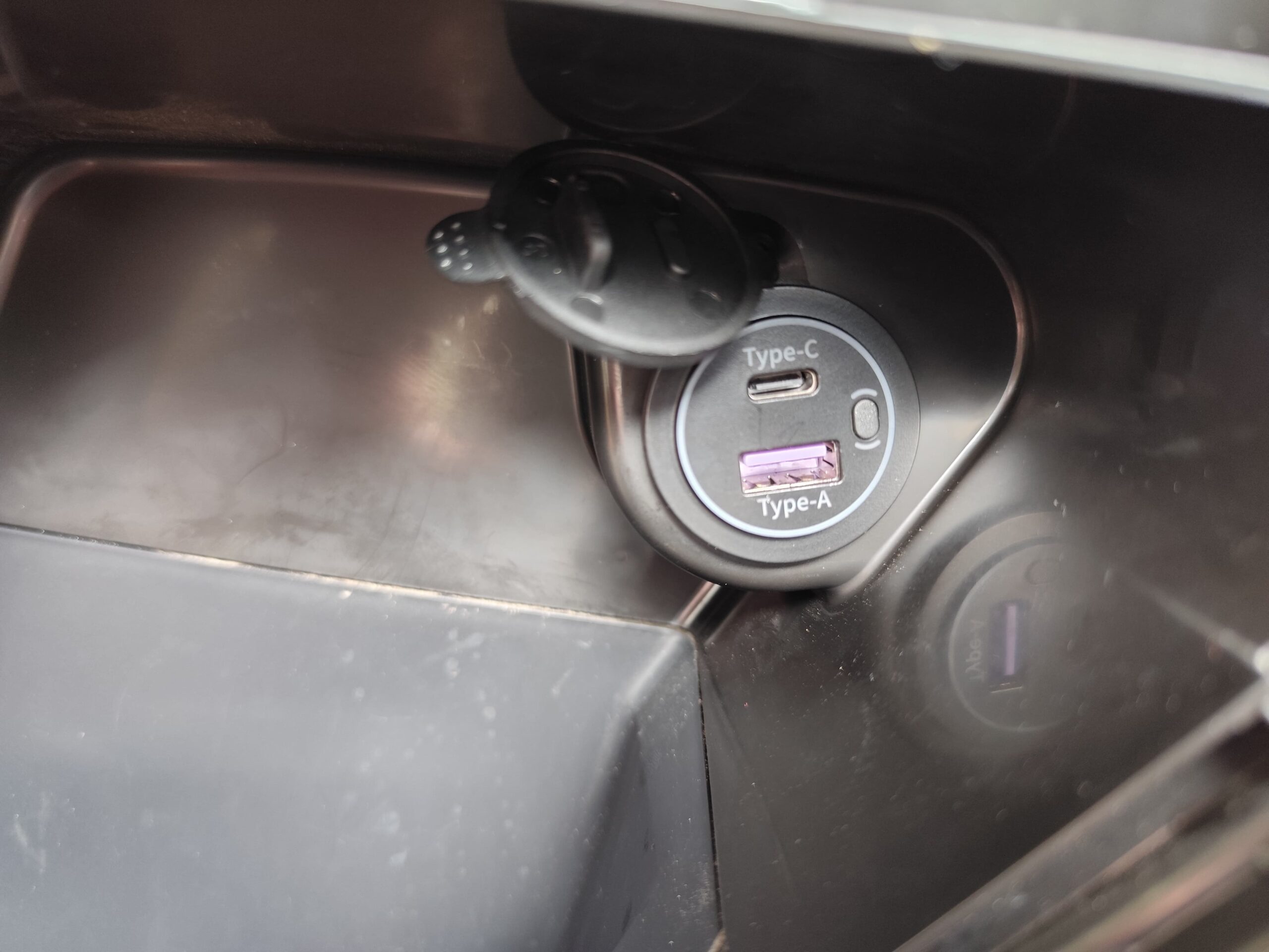 Karena pakai model baterai tanam, maka harus colok langsung ke motor. Hal yang menarik, ada indikator di bodi samping motor. Ada 5 bar yang menjadi indikasi pengisian baterai. Kalau semua sudah menyala dan ganti berwarna biru, maka baterai sudah penuh.