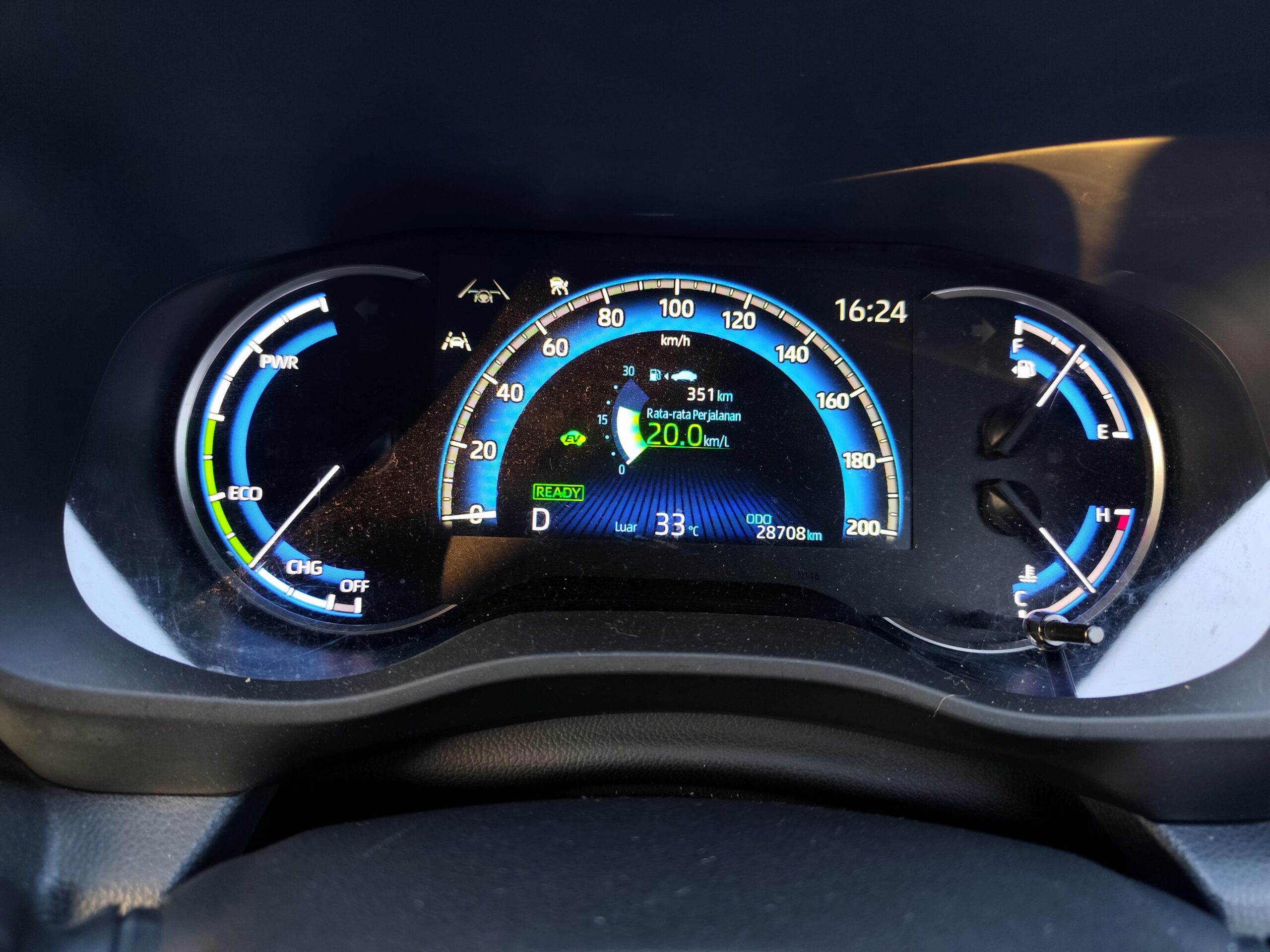 Indikator mudah dibaca. Background biru menandakan drive mode di Normal, kalau ECO warna hijau dan Sport warna merah (foto : toncil)