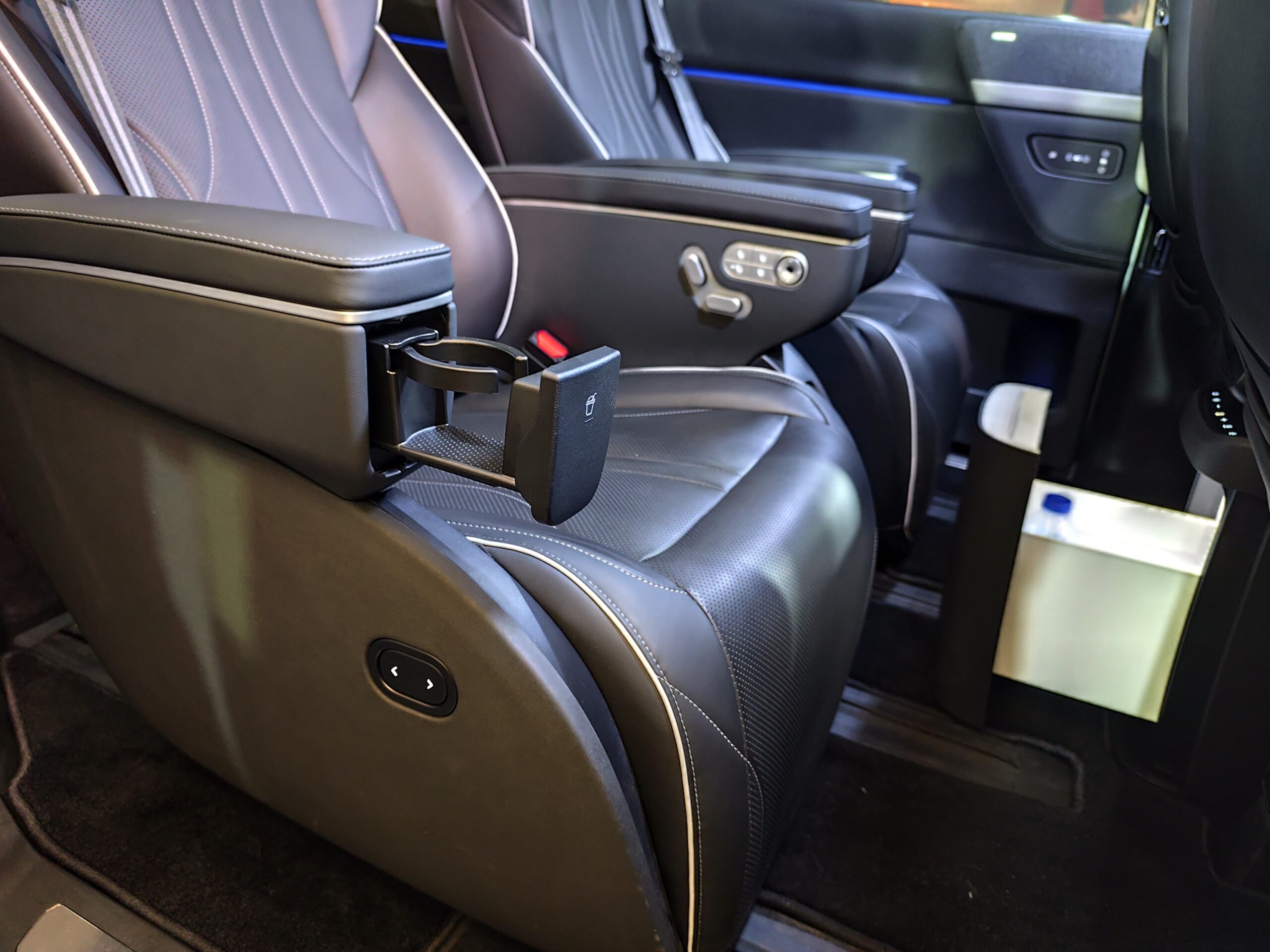 Selain mini kulkas, ada juga cup holder di ujung arm rest masing-masing jok. Semakin memudahkan untuk menyimpan minuman.