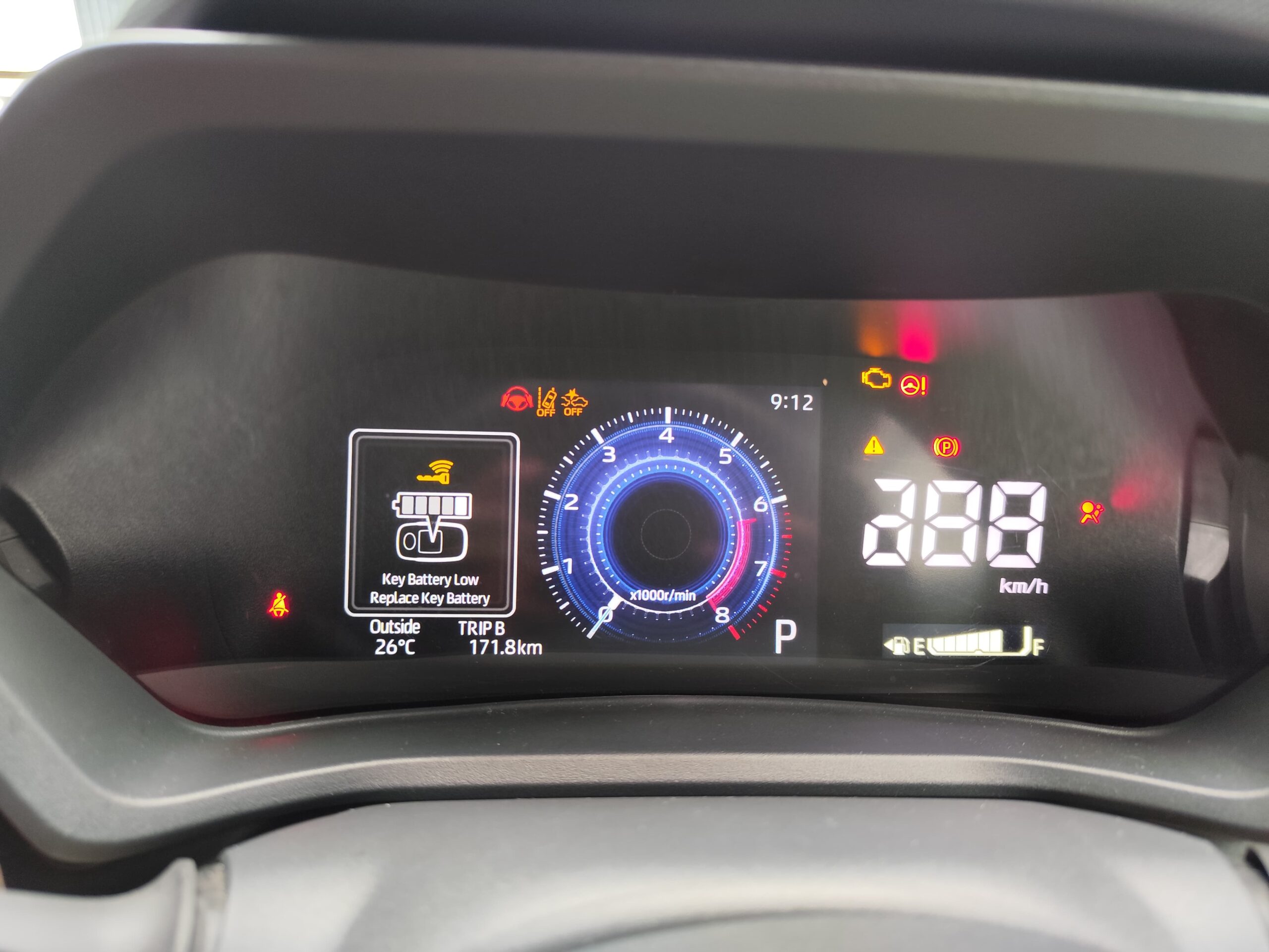 Untuk di All New Toyota Veloz Q CVT TSS akan ada peringatan di instrument cluster jika baterai sudah akan habis. Diikuti dengan bunyi saat mesin dihidupkan dan dimatikan.