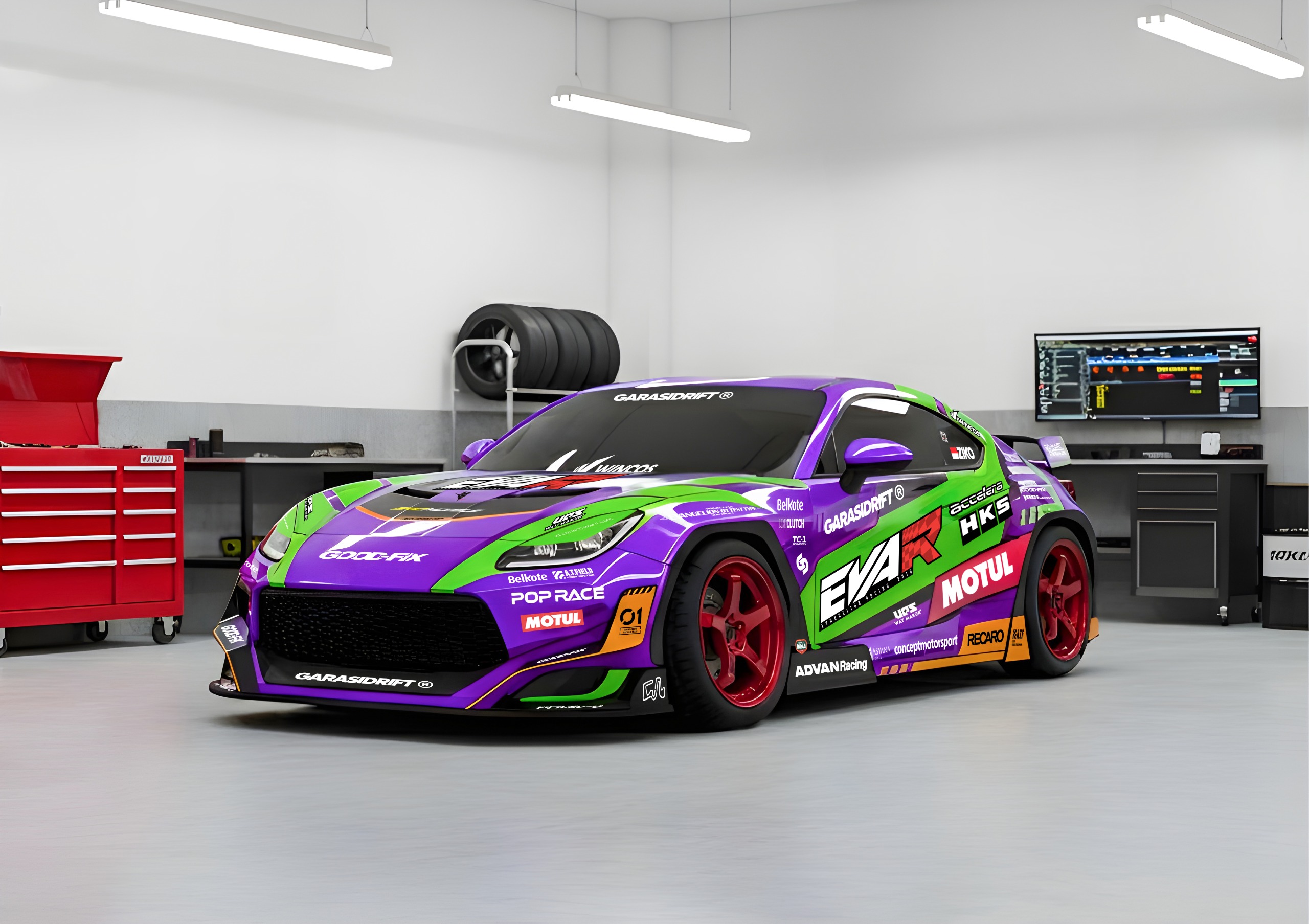 Kemudian ada lagi kolaborasi Garasi Drift x Evagelion Racing. Mobil drift yang dimiliki akan memakai livery anime dan racing Jepang tersebut. Selain itu, para punggawa Evanglion lengkap dengan race girl-nya turut diboyong.
