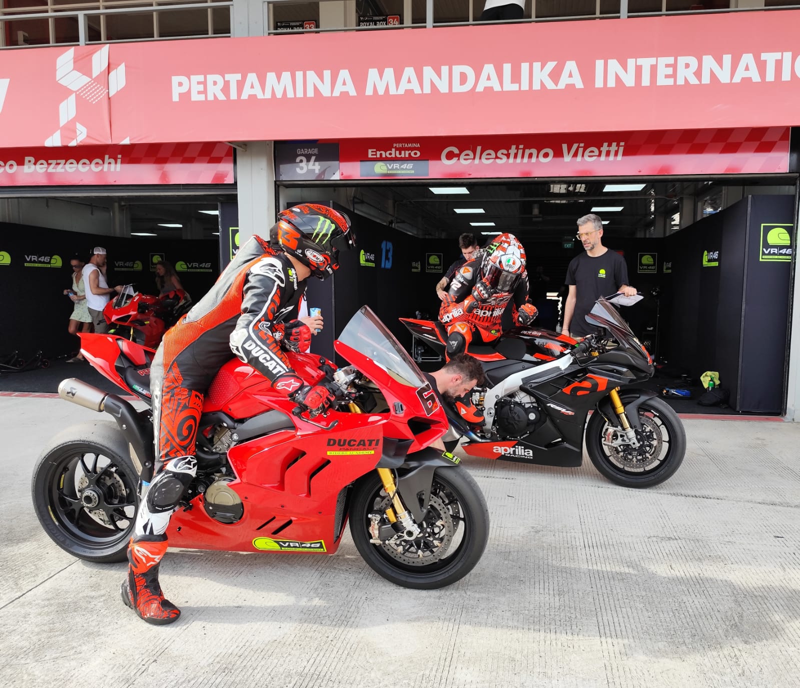 Sedangkan Di Giantonnio meski bukan dari VR|46 Riders Academy tapi tetap datang karena merupakan pembalap tim Pertamina Enduro VR46 Racing Team.