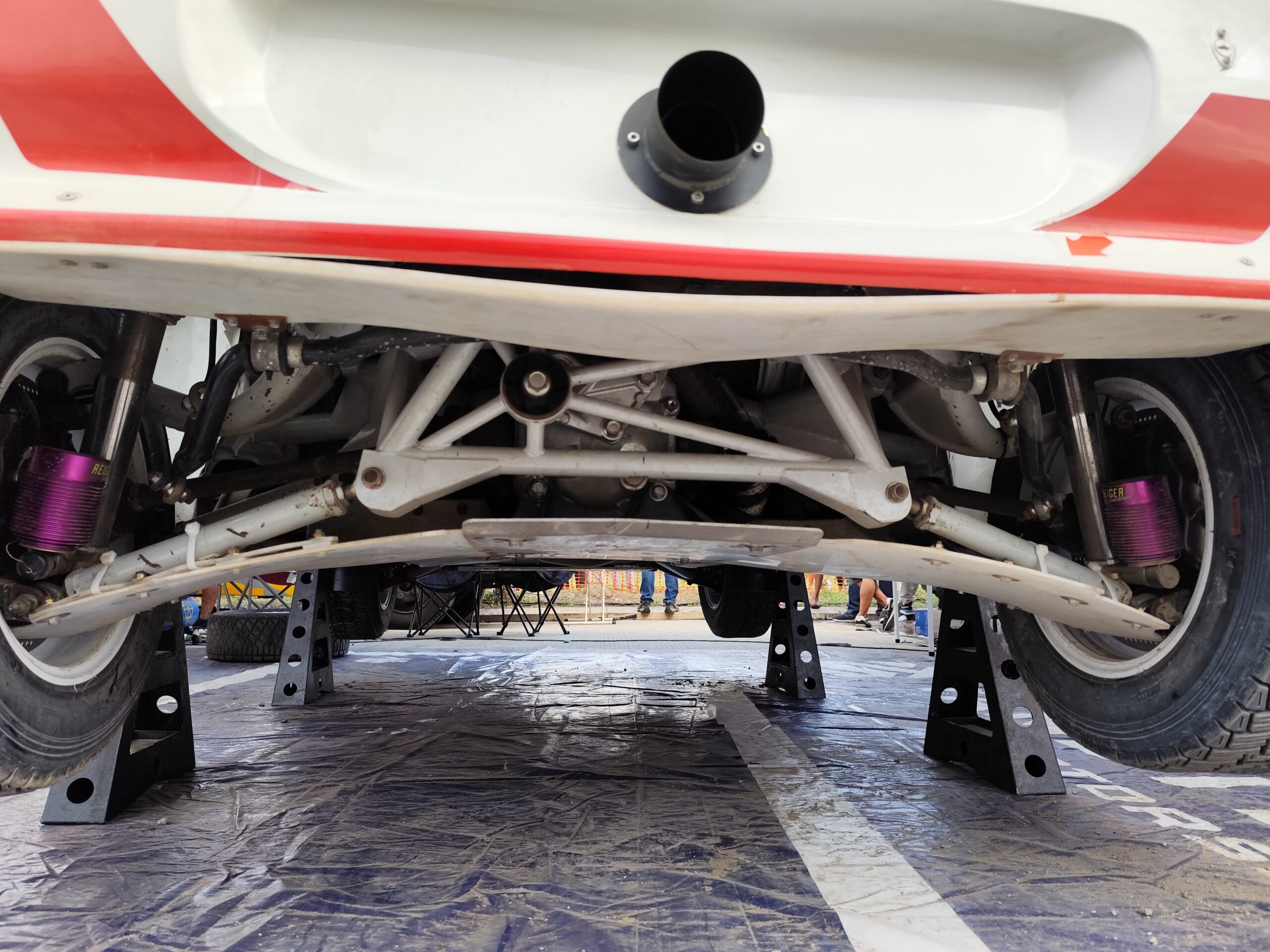 Kaki-kaki juga mengandalkan punya Mitsubishi Evolution X. Untuk konstruksinya diracik ulang sehingga bisa lebih kuat. Membuat bagian kolong layaknya mobil tubular.