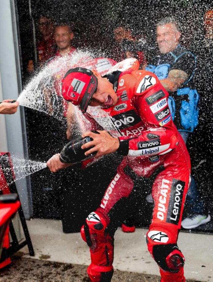 “Saya sangat senang dengan hasil balap ini. Kembali membuktikan kalau Ducati memang motor yang sangat kencang. Saya tidak pernah melihat ke belakang, selalu fokus melihat depan sehingga saya tidak tahu keadaan di belakang,”